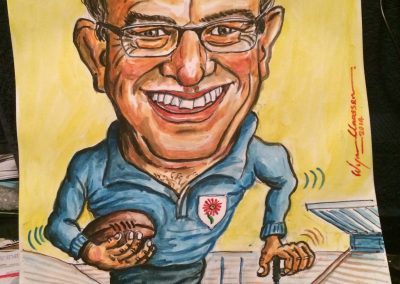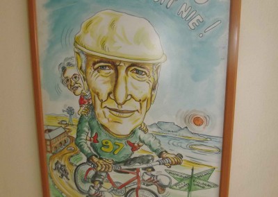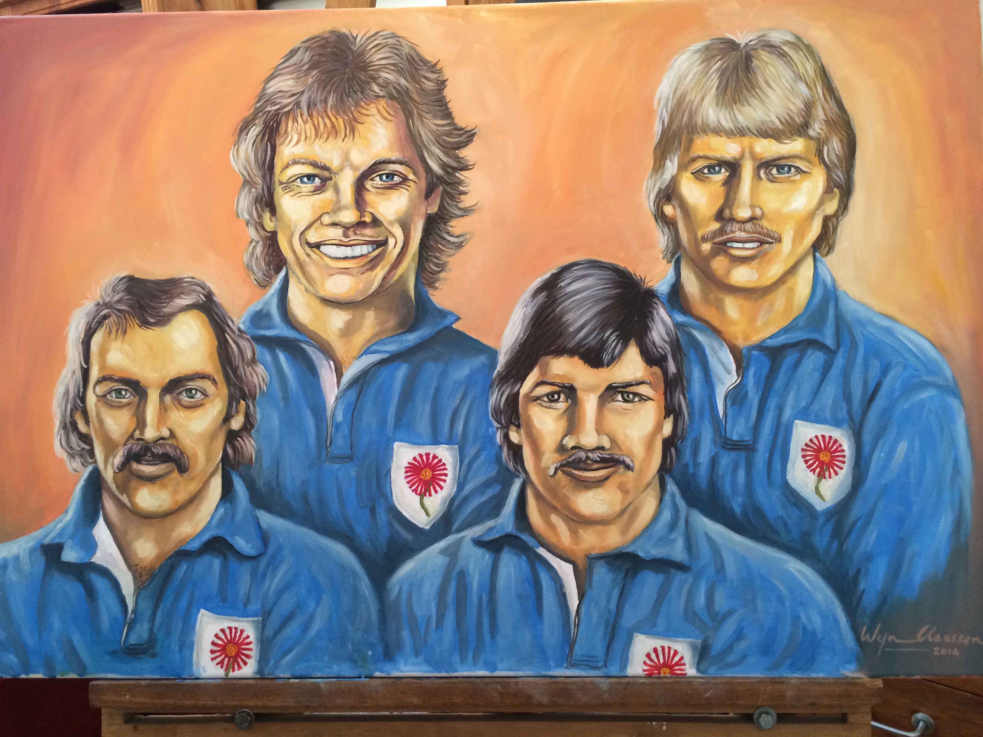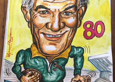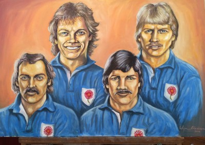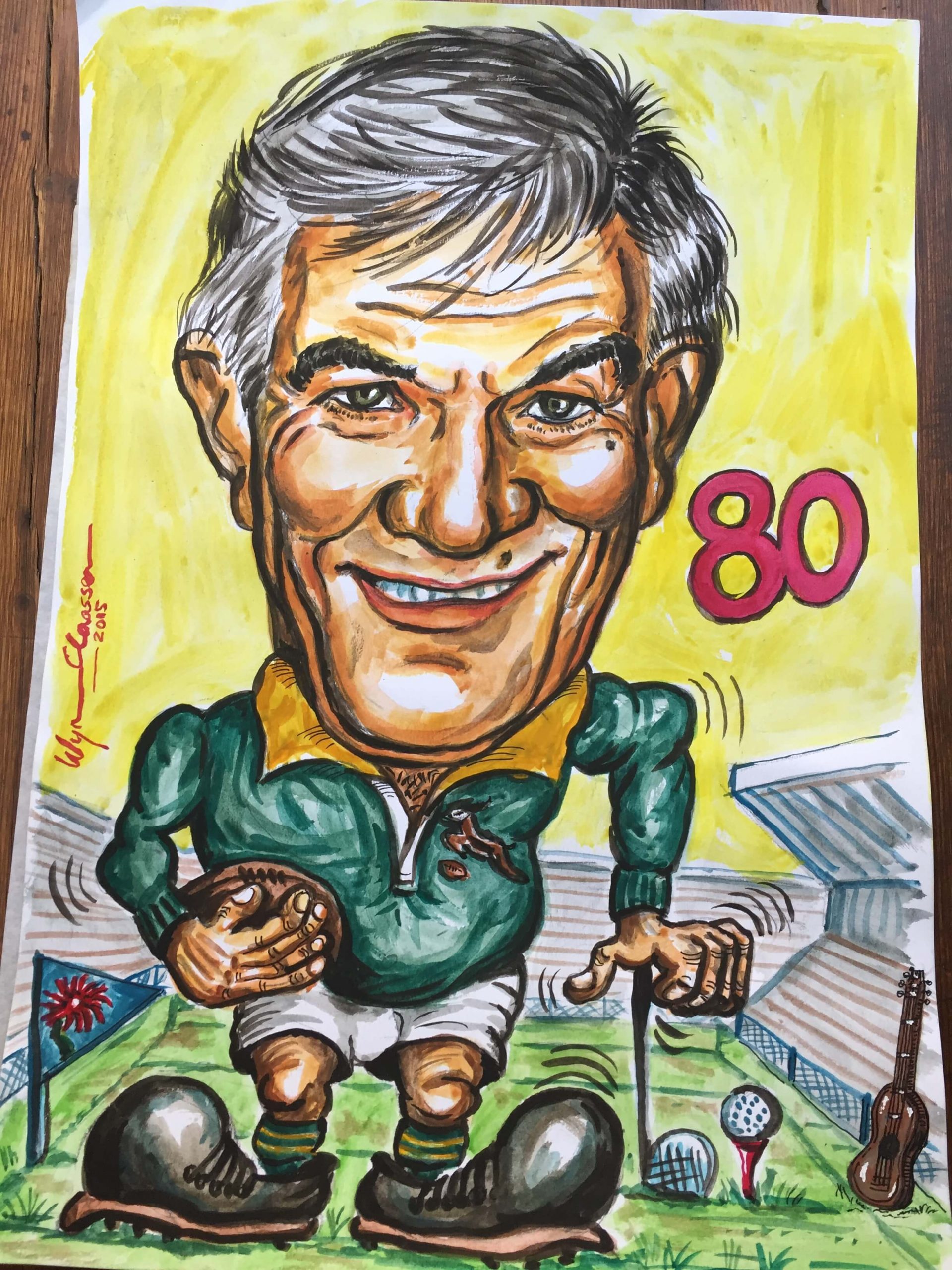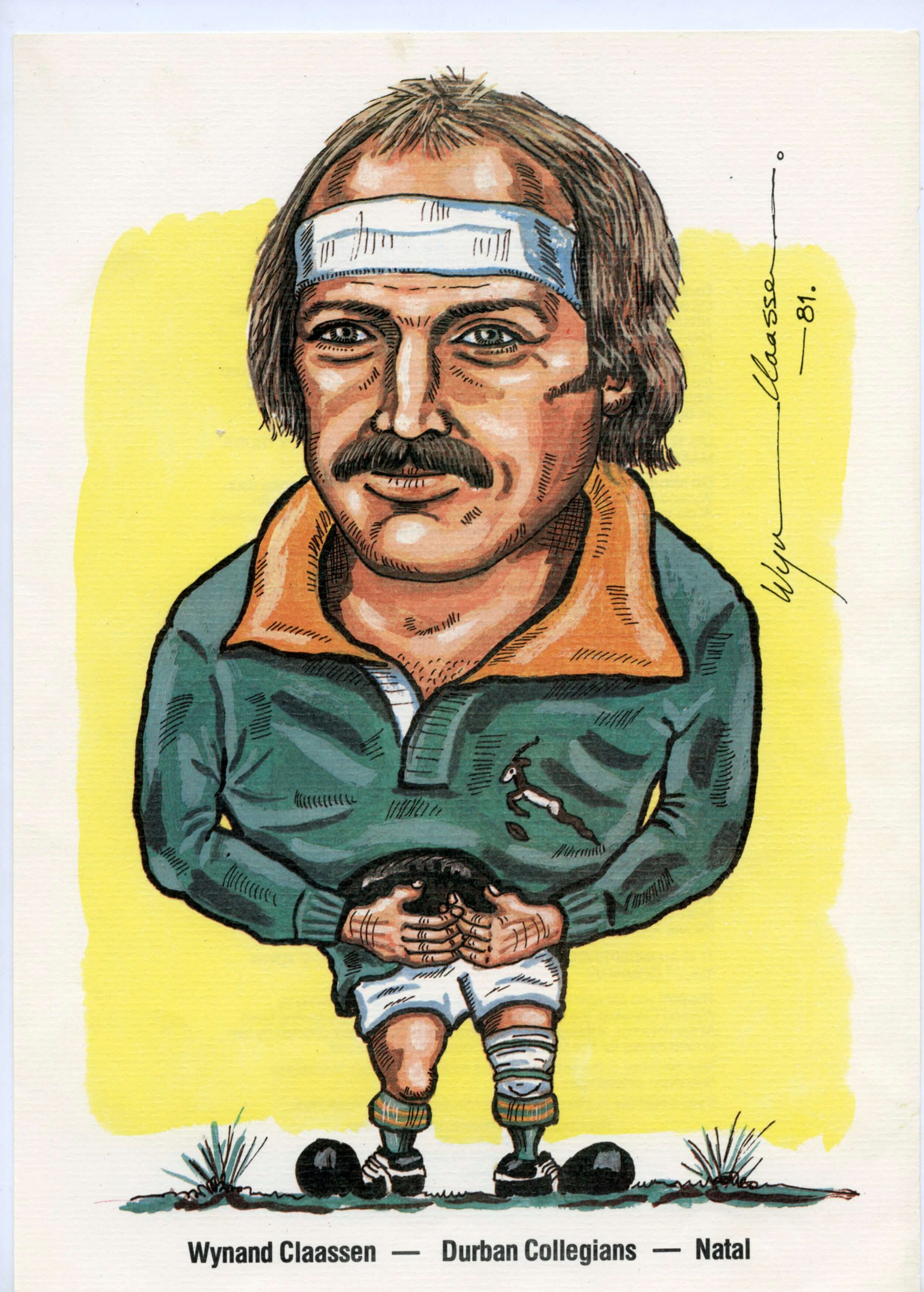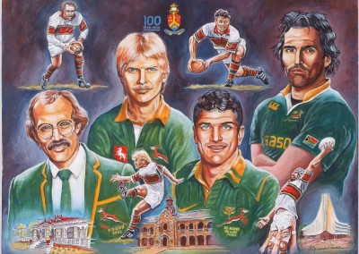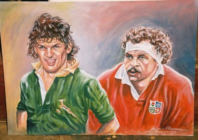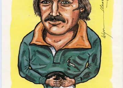 On the Springbok team’s return from New Zealand in 1981, Wynand (as the captain) turned his artistic abilities to caricatures of his team mates. The sale of these drawings through BP-outlets, raised R27.000 for the Chris Burger Players’ Memorial Fund, which was established to help players suffering severe injuries.