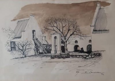 Being an architect, Wynand Claassen is also an accomplished artist, where his talents extend to pen and ink sketches, as well as oil paintings, which include portraits, landscapes and studies of historical buildings. His first solo exhibition, which proved a great success, was held at the SFW Centre in Cape Town’s Golden Acre complex in 1982. He also held exhibitions in Sasolburg and Standerton.